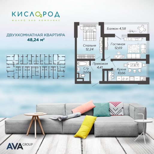 Жилой комплекс в современном стиле в экологически чистом районе. В рамках комплексного развития территории строятся школа, детский сад, поликлиника, а также созданы общественные пространства, торговый центр, спортивные зоны, благоустроен объект археологического наследия - парк "Бытха".