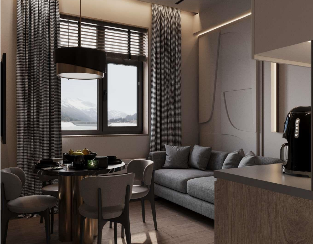 Премиальный комплекс сервисных апартаментов расположен на высоте 560 метров в всесезонном горном курорте "Роза Хутор" на берегу горной реки Мзымта всего в 300 метрах от горнолыжных подъемников, окружении ресторанов, кафе, бутиков. Здесь есть все, чтобы продолжить жить в своем ритме при этом наслаждаться высоким сервисом курорта и собственной внутренней инфраструктуры.